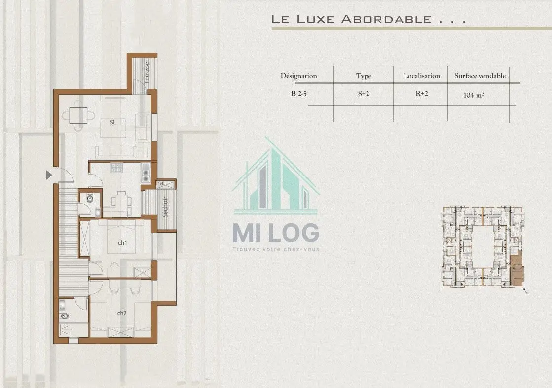 Appartement S+2 entre 109 m² et 119 m² à la Nouvelle Médina