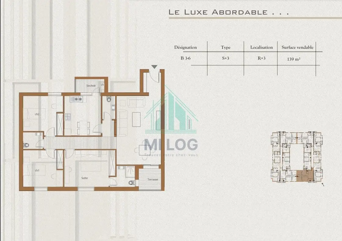 Appartement S+3 entre 131 m² et 134 m² à la Nouvelle Médina